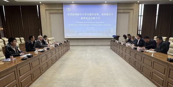 虞宝桃对Andreas Ostendorf教授一行的到访表示热烈欢迎,并详细介绍了安徽大学的发展历程情况。Andreas Ostendorf介绍了波鸿鲁尔大学的办学理念、学科优势及在光学领域的研究进展。中国光学学会李传峰教授应邀参会并介绍了学会的相关情况。