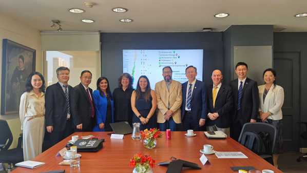 值此十八周年庆典之际,安徽大学代表团专程到访,与圣托马斯大学校方举行工作会议。双方围绕湿地生态修复联合研究、拉美地区本土中文教师培训中心建设等具体项目展开务实交流。代表团还实地考察了孔院的办公与教学环境,与中方教师亲切座谈,并参访了中国国家电网智利切昆塔能源公司,共同探讨拓展“中文+职业技能”培