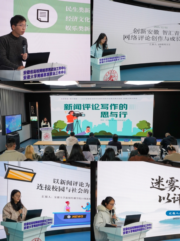 本网讯(融媒体中心)12月3日下午,创新安徽 智汇青春——2025安徽省高校师生原创网络评论推选展示活动安徽大学分享会在安徽大学磬苑校区举办。本次活动由中共安徽省委教育工委、中共安徽日报报业集团委员会联合主办,安徽日报安徽时评编辑部、安徽日报理论部、安徽大学党委宣传部共同承办。