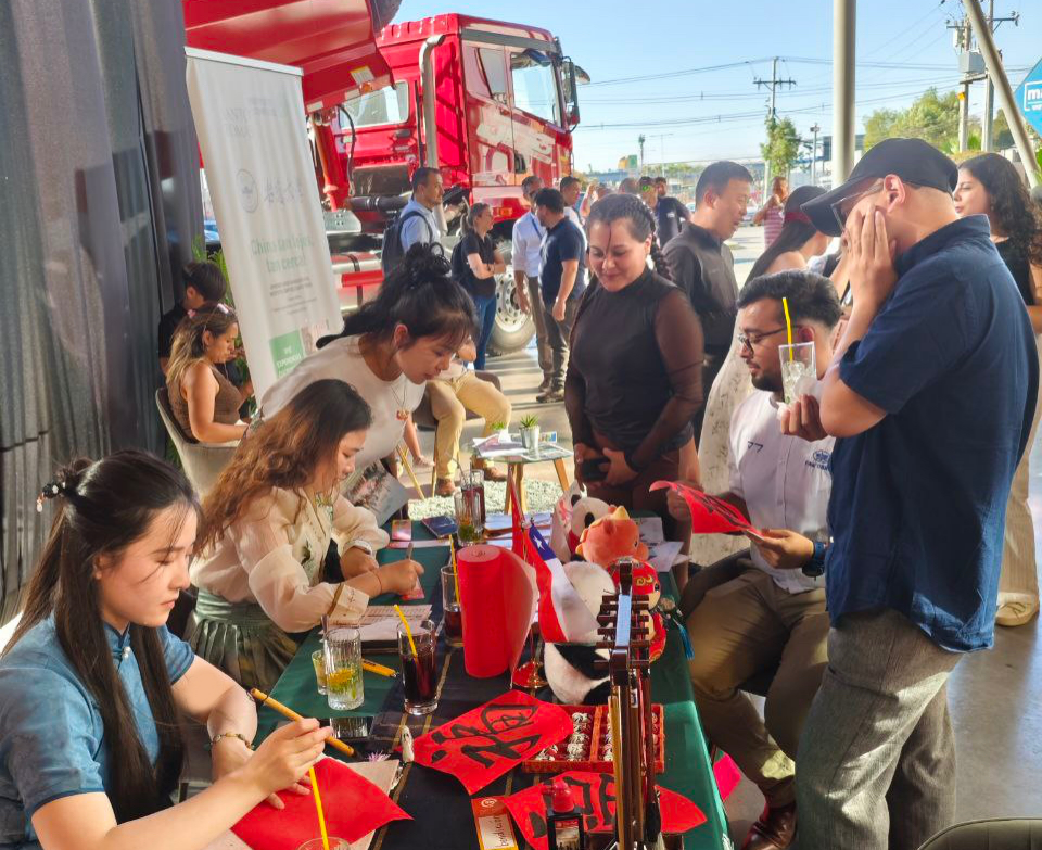 在学校的支持下,圣托马斯大学孔子学院持续探索汉语教学以外的文化服务功能,致力于为中资企业在智利的形象建设和本土传播提供文化助力。活动期间,圣大孔院中方团队现场为智利观众书写中文名字、展示书法艺术,教师胡金花弹奏古筝,受到热烈欢迎。许多参与者在体验中感受到中华文化之美,也进一步理解了中国企业在海外所传递的“专业、责任、信任与文化自信”等品牌精神。孔院与企业文化的有机结合,使品牌活动不仅是产品与技术的展示,更成为一次跨文化的友好交流。
