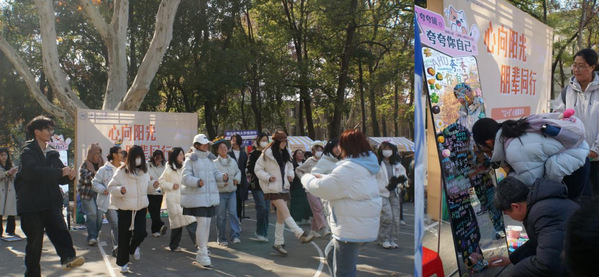 本网讯(学生处)12 月 5 日,“心向阳光,朋辈同行”心理健康嘉年华活动在磬苑校区鸣磬广场与龙河校区篮球场同步举行。本次活动由学生处(心理健康教育中心)主办,大数据与统计学院、哲学学院分别承办,各二级学院心理辅导站及大学生心理协会协办,旨在让学生在趣味体验和多维互动中收获心灵成长,进一步提升心理健康意识与素养。