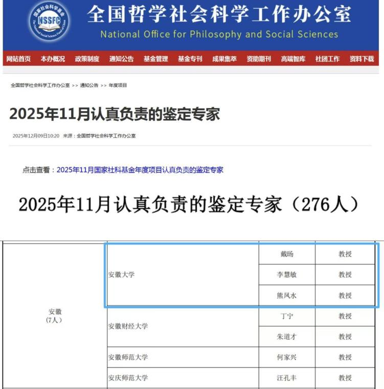 “认真负责的鉴定专家”是国家社科基金项目鉴定工作中的一项重要荣誉,旨在激励专家秉持严谨态度与专业精神,恪守学术规范,客观、中肯地完成成果评议。此次我校三位教授同时获评,既是对他们个人在匿名通讯鉴定中展现的高度责任感与扎实学术功底的直接肯定,也反映了我校教师队伍在参与国家高层次学术评价体系中持续发挥的可靠作用与良好声誉。