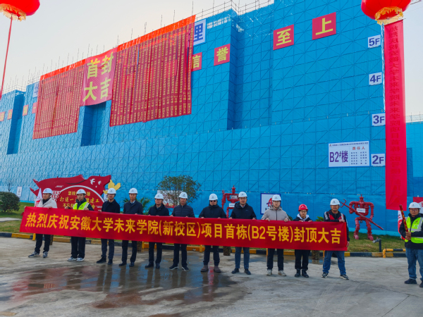 本网讯(未来学院(新校区)建设指挥部办公室)12月16日,安徽大学未来学院(新校区)建设迎来里程碑式阶段性进展——首栋B2单体实现主体结构封顶。