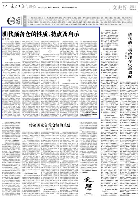 【学术笔谈】“五谷者,万民之命,国之重宝。”中国古代历朝历代都十分重视粮食的生产、收储和散放工作。明代也不例外,朱元璋在建立明王朝伊始,不仅不遗余力地推行水利、仓储等荒政建设,而且还“召天下老人至京,随朝因命,择其可用者使赍钞往各处,同所在老人籴谷为备”,由此创制出预备仓这一特殊的备荒仓储,产生深远历史影响。