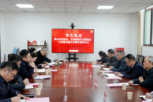 本网讯(徽学研究中心 黄金仙)12月16日,黄山市委常委、宣传部部长汪凯一行到安徽大学徽学研究中心调研,安徽大学党委常委、副校长汪海燕出席座谈交流会。徽学研究中心党总支书记张鑫主持。
