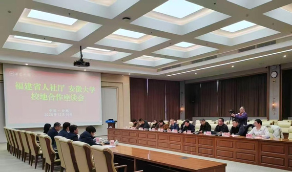 黄志祥对孔繁军一行来访表示欢迎和感谢,并围绕历史沿革、学科建设、人才培养、科研创新等方面,全面介绍了安徽大学的建设发展成效。孔繁军介绍了福建经济社会发展、产业布局及人才需求情况。双方希望以此次活动为重要契机,校地双方进一步强化顶层设计,聚焦重点产业链打造精准供需对接清单,在毕业生就业、人才培养、科技成果转化等方面深化合作,为福建高质量发展提供源源不断的智力支持,携手共创校地深度合作、互利共赢的新标杆。