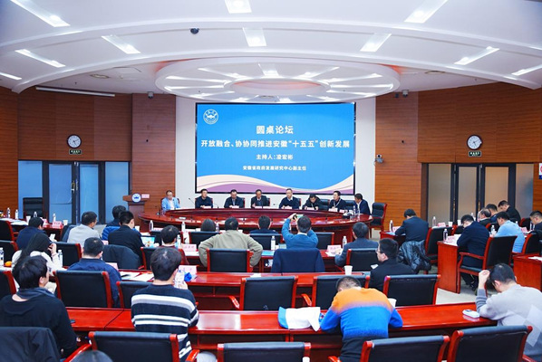 圆桌论坛环节,以“开放融合,协同推进安徽‘十五五’创新发展”为主题,汇聚来自政产学研医等多个领域的权威专家。国家发改委国家信息中心区域研究院办公室主任费太安研究员、安徽大学科技处副处长丁石川教授、安徽大学经济学院院长江永红教授、安徽大学社会与政治学院院长张军教授、中科合肥技术创新工程院副主任吴家猛高级工程师、中国科学技术大学附属第一医院张旭晗副主任医师、安徽大学创新发展研究院胡以志教授等,围绕产业创新和治理创新、人文社科类学科与理工类学科交叉融合、青年人才培养等赋能创新发展展开跨界对话,讨论气氛热烈。