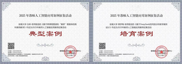 在人工智能与教育融合的前沿领域,我校教师同样积极创新。在教育部教育技术与资源发展中心组织的2025年教师人工智能应用案例征集活动中,我校两项成果从全国高校397件参赛作品中脱颖而出,获得国家级认可。
