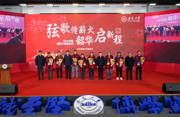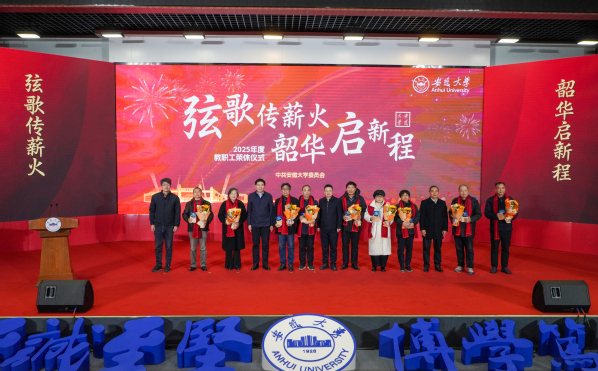 本次荣休仪式通过安徽大学视频号同步直播。2025年度荣休教职工,各学院、教学部,校直机关各部门,各直属附属单位主要负责同志和教师代表现场参加仪式。