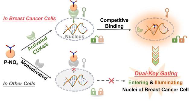本网讯(化学化工学院朱小姣)细胞核携带的完整遗传蓝图,在乳腺癌的增殖和转移中扮演着核心角色。因此,直接高效地损伤核DNA,被视为治疗乳腺癌的关键途径。然而,实现光敏剂的核DNA靶向仍面临两大关键挑战:1.穿过核孔复合物:成功进入细胞核是第一步,也是最关键的限速步骤;2.与核DNA高亲和结合:进入核内后,需牢牢“锚定”在DNA上。