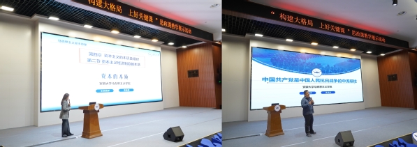 活动现场,马克思主义学院葛晓梅、蒋成贵两位老师进行了精彩的教学展示。葛晓梅老师围绕《马克思主义基本原理》课程中“资本的本质”一讲,以深厚的理论功底和生动的案例,深刻剖析了资本作为一种历史性的生产关系的本质,并引导学生思考在当代中国如何利用、驾驭和超越资本。蒋成贵老师以《中国近现代史纲要》课程中“中国共产党是中国人民抗日战争的中流砥柱”为题,针对历史虚无主义观点,从事实、逻辑、价值三个维度层层辨析,深刻阐释了中国共产党在全民族抗战中的关键作用和成为中流砥柱的历史必然性。